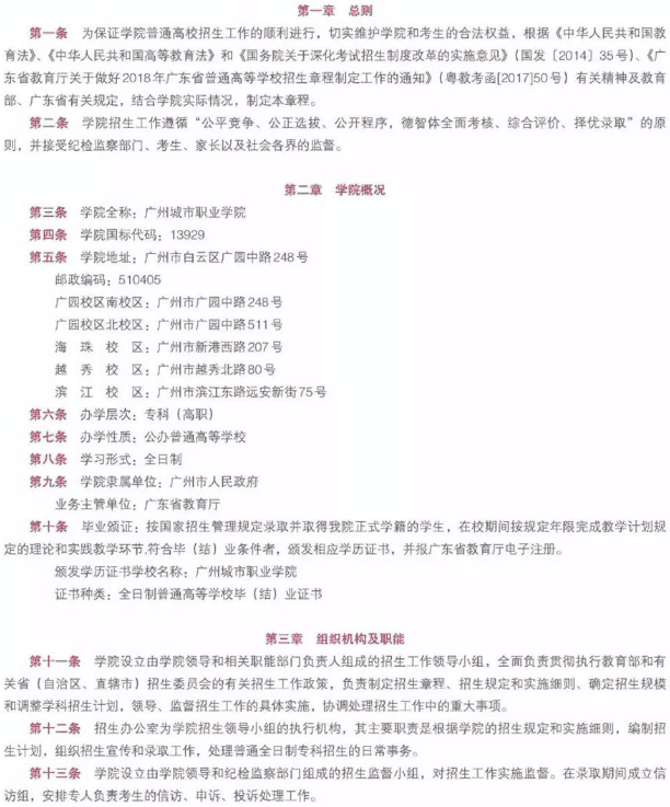 广州城市职业学院2018年普通高校招生章程